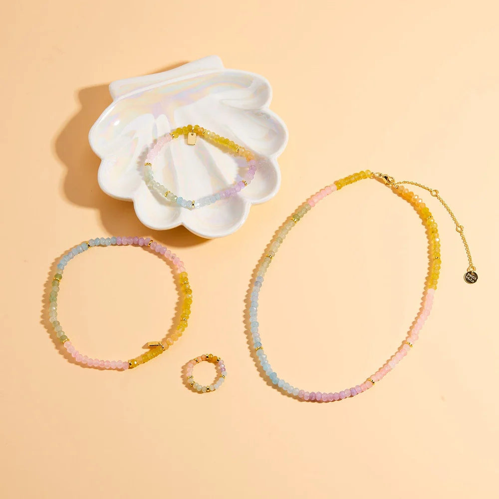 - Colored raw quartz and glass beads are approximately 7mm in diameter