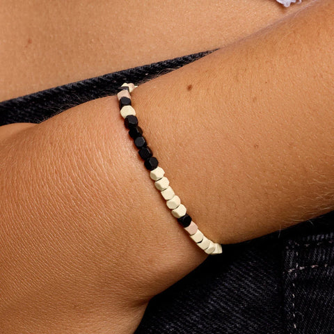 - Total length of bracelet is 6.5"- Strung on durable elastic string - Coated Hematite beads are 4mm in diameter - Because jewelry products are handcrafted by artisans, dimensions may vary from piece to piece