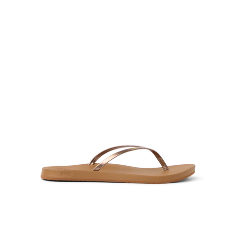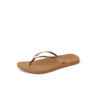 A delicate embroidered gold detail and slim straps transform our classic Cushion Slim flip flops. Just as comfy, a touch more chic. With a vegan leather strap, high energy rebound footbed and anatomical arch support.