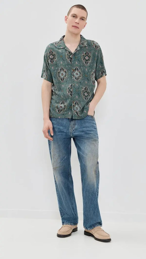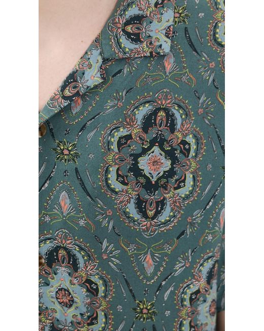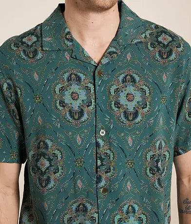 Add a touch of laid-back style with the Green Arlo Camp Shirt from Rhythm. Made from rayon fabric, this shirt features short sleeves, a camp collar, and a button-down front closure, all in a comfy fit for a relaxed, casual look.