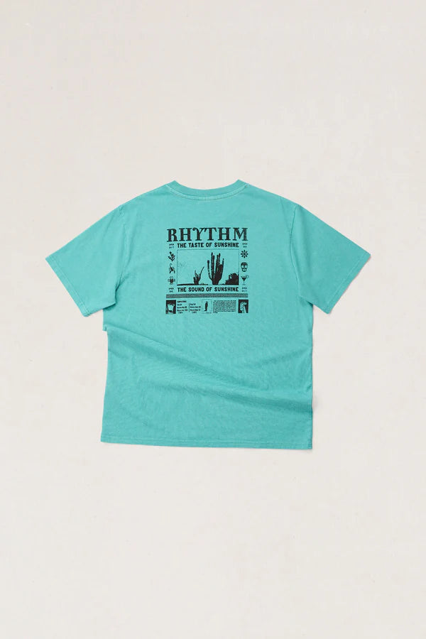 This sun-washed tee channels desert inspiration, finished with screen-printed cactus artwork, a vintage fit, and tonal Rhythm trims.
