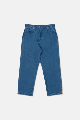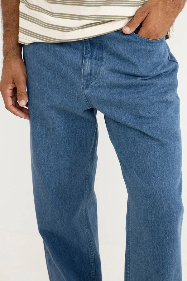 A modern classic, the Essential Jean in Dark Wash is crafted from durable cotton denim and finished with an authentic vintage wash. Featuring a fixed waistband, coin pocket detailing, and Rhythm trims, it’s built for everyday wear.